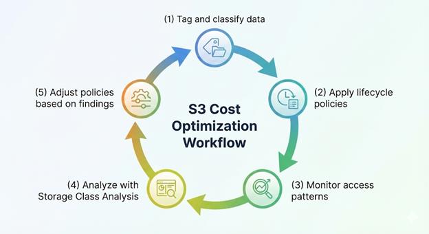 Tags enable granular cost allocation, access control, and lifecycle policy application. A robust tagging strategy transforms S3 cost management from bucket-level guessing to object-level precision.
