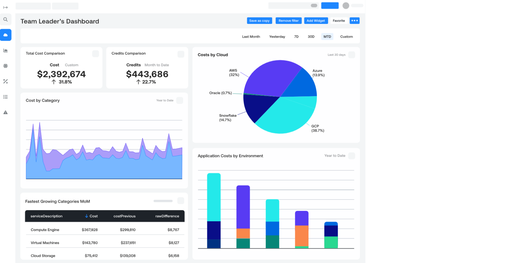 Companies use many different tools to run their business. Finout combines those different bills into one screen. Famous for its "MegaBill" technology. It consolidates AWS, GCP, Azure, Datadog, Snowflake, and other third-party SaaS tools into a single financial view.
