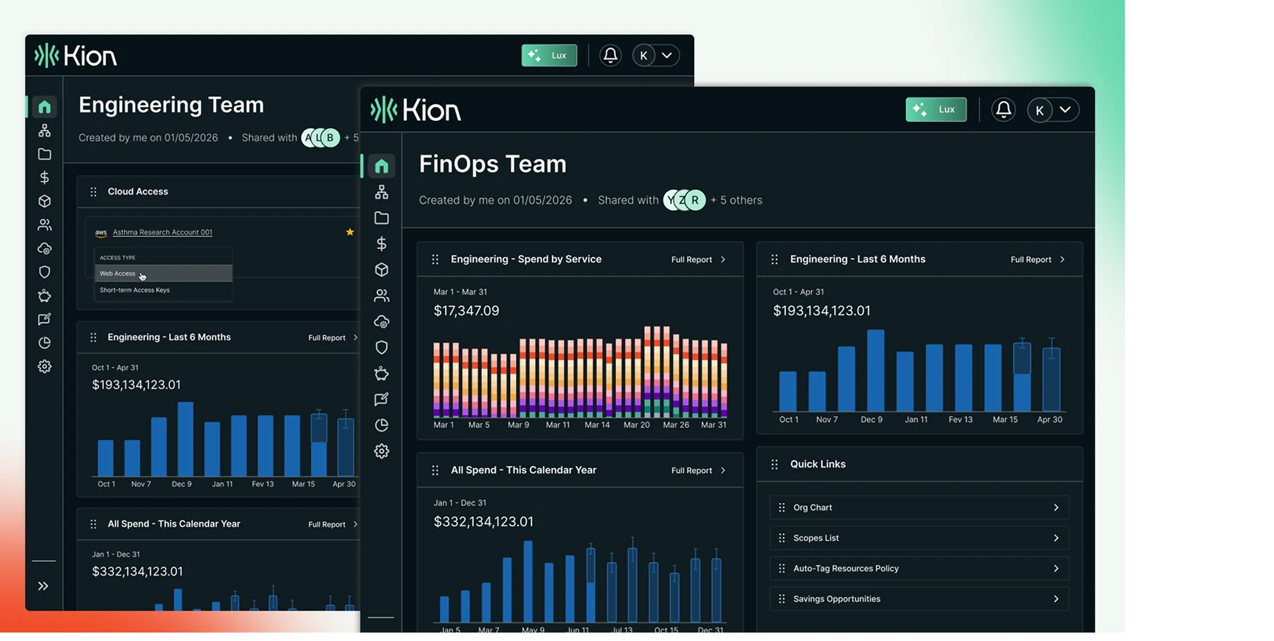 Kion goes beyond simple cost tracking by integrating deep security and compliance policies. It uses Model Context Protocols (MCP) and Generative AI like Claude Desktop. This allows users to ask cost questions in plain English and automatically generate financial policies.
