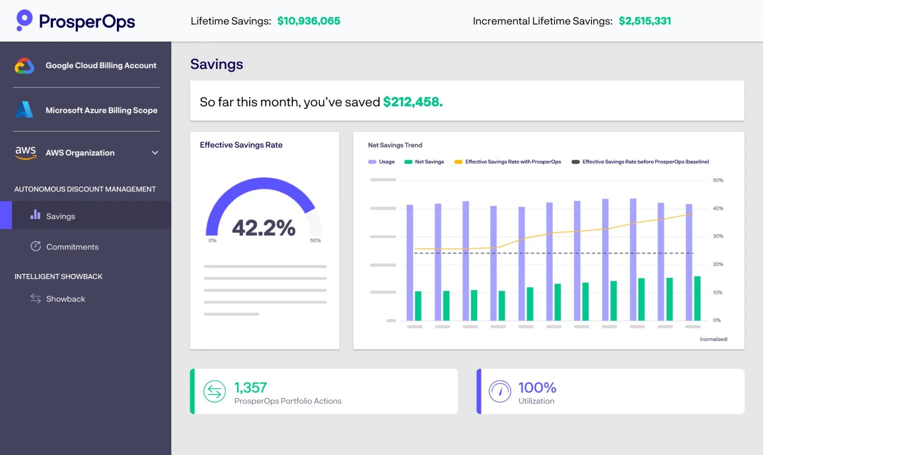 Buying discount plans from cloud providers is complicated. ProsperOps removes human error from this process. It algorithmically manages Reserved Instances (RIs) and Savings Plans. It constantly buys and trades discount commitments to match your exact server usage.